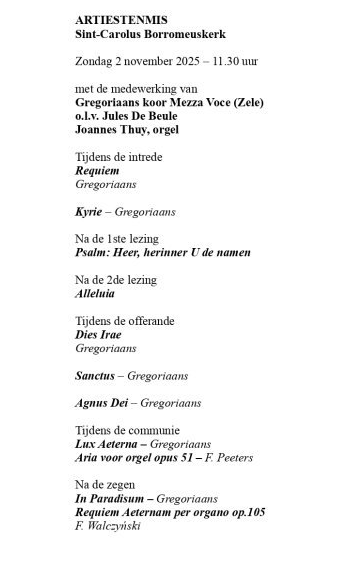 Zondag 2 november 2025, 11.30 u Artiestenmis