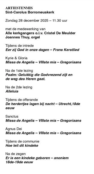 Zondag 28 december 2025, 11.30 u Artiestenmis